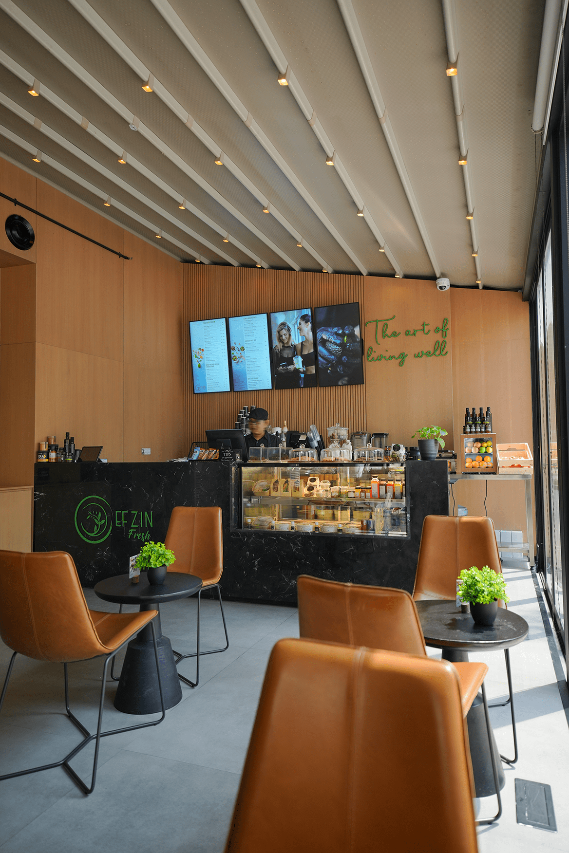 Experience Efzin Fresh at our thoughtfully designed venues, where health and sustainability come together. Enjoy farm-to-kitchen meals, coffee, and nutrient-rich options in a welcoming space that nurtures both body and mind. Each location embodies our commitment to wellness, offering fresh, locally sourced ingredients, eco-friendly packaging, and a vibrant community atmosphere. Join us for a nourishing experience that supports your health and the environment.