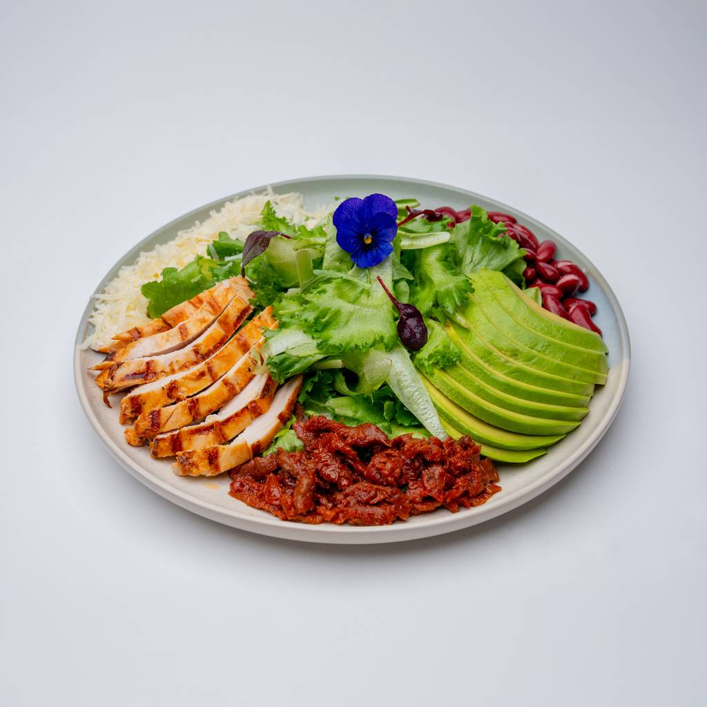Chicken Breast, Lettuce, Avocado, Red Kidney Beans, Sun-dried Tomatoes, Parmesan Cheese