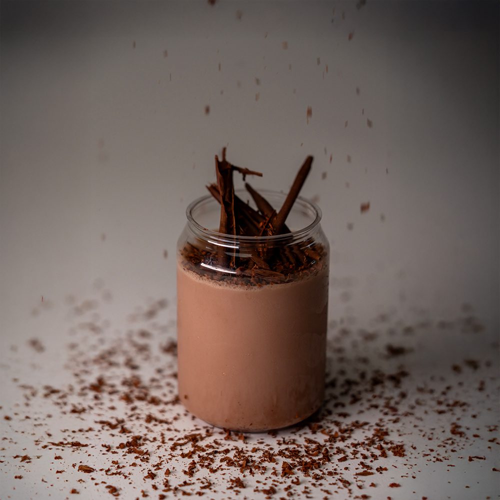 Almond Milk, Whey Chocolate Protein Powder, Gelatin, Vanilla Bean, Dark Chocolate